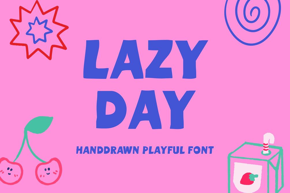 Introducing Lazy Day, a handdrawn playful font that brings a touch of whimsy and charm to any project. Perfect for children’s books, playful branding, and creative designs, Lazy Day combines a relaxed, fun style with an easy-to-read format. Its unique handdrawn quality adds a personal touch, making your text stand out with character and personality. Embrace the joy of lazy, carefree days with this delightful font, ideal for capturing the essence of fun and creativity.